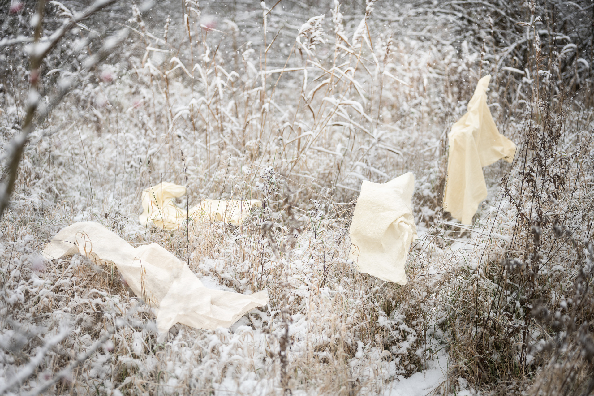 I dyed fabric with the plants and brought it with me to my new nature. I chose scenes of nature very typical to my current living area. It’s a way of incorporating my “hembygd” in a new place. As a kind of wall hanging for the nature.